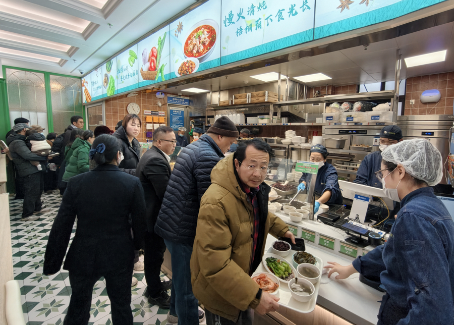 昨天中午11时不到,位于静安区康定东路28号的“蝴蝶食坊”社区食堂内,取餐档口前已排起长龙。队列里,有拎着保温袋、熟门熟路挑选菜品的爷叔大姨,也有举入部下手机兴趣查看的年青样貌。